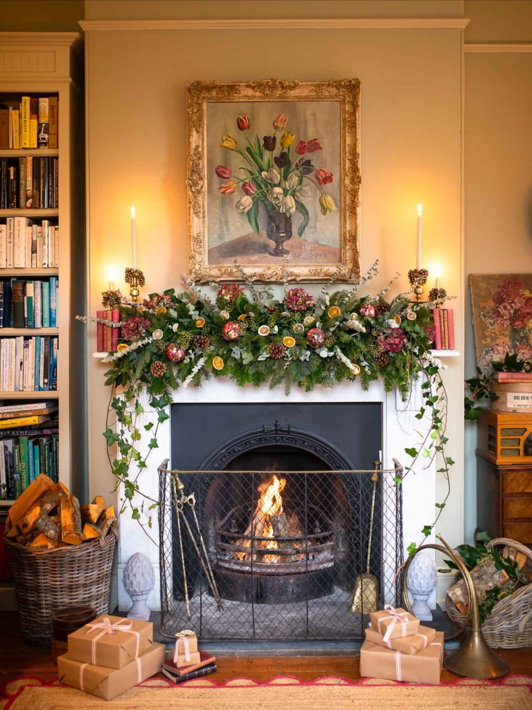 Garlands are a fun way to add movement and texture. I love using fresh or faux greenery garlands along the edge of my mantel. Some of my favorites include eucalyptus, boxwood, and ivy.