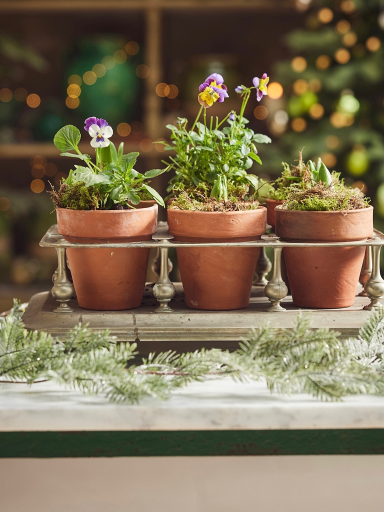 They bring texture, greenery, and practicality, as you can clip a few sprigs for cooking. Plus, they make the mantel feel alive and connected to nature.