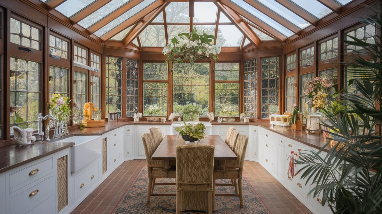 If space allows, extend your solarium kitchen into an open dining area. The seamless flow of light from cooking to dining enhances the sense of openness — ideal for entertaining or family gatherings.
