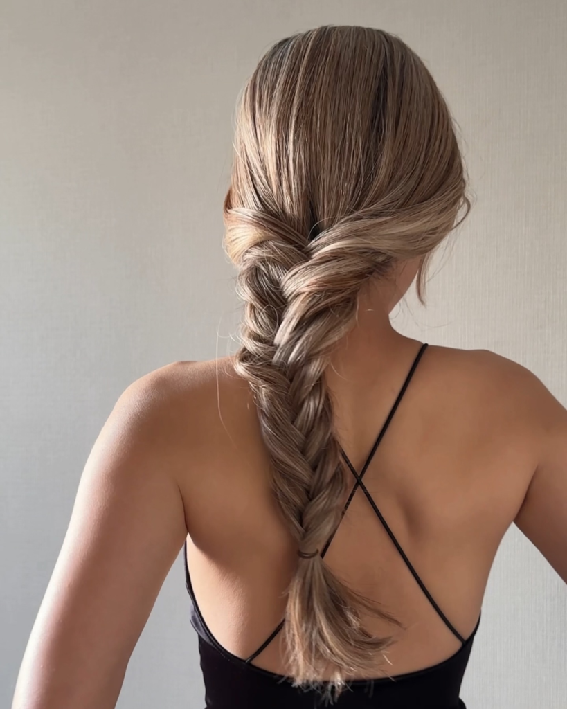 The side fishtail braid gives a relaxed and elegant vibe. I wear this style when I want something different from the usual braids. It’s slightly messy, which adds character, and it’s perfect for long summer days when I want minimal fuss.