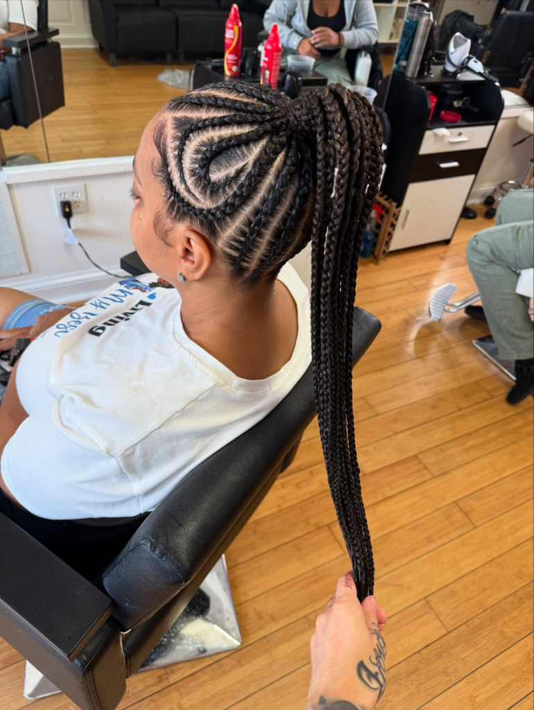 Zig-zag braids are bold and fun. I like them for summer festivals or casual parties when I want my hair to be eye-catching. It’s a style that’s playful yet chic, and it keeps my hair controlled in the heat.