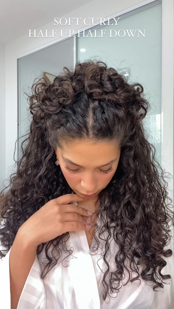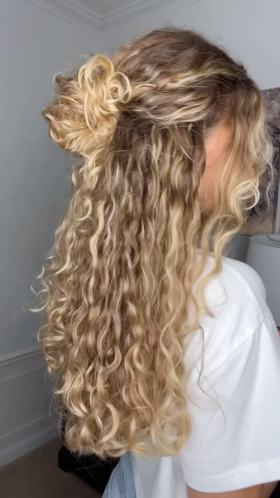 The half-bun is my weekend favorite. I gather the top half of my curls and twist them into a small bun while leaving the rest down.
